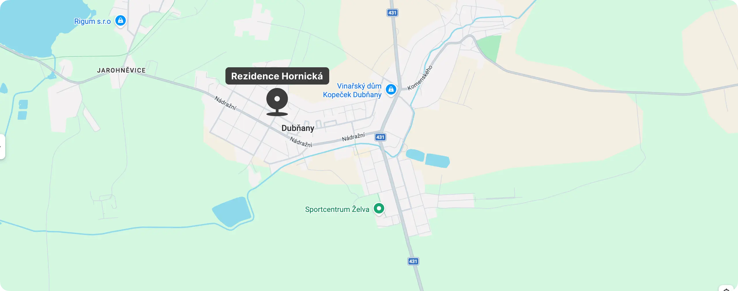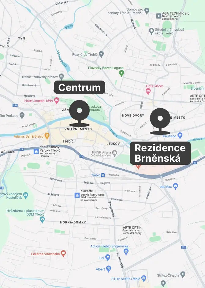 Residence Hornická stojí v rezidenční části Dubňan, kde máte v dosahu obchody, služby i základní vybavenost.